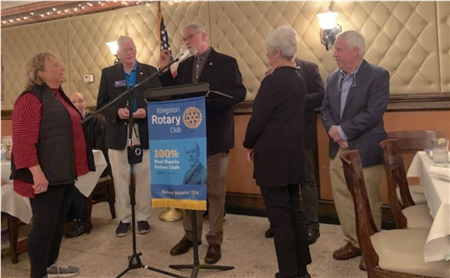 Induction of new members Left to right: Pat Cohen Incoming District Governor Peter Sullivan Past President Richard Cattabiani Bonnie Stewart Jim Bogner. Inductees are: Jesse Barton - President Phil Masquelette - Michael Flamhaft
